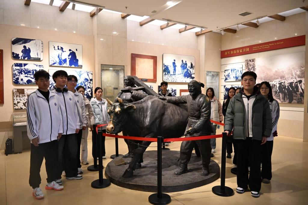 随后,大家走进西柏坡陈列展览馆。从“光荣的平山”到贯穿多个展厅的珍贵史料,通过一件件文物和一幅幅照片,全面回顾了党中央在西柏坡指挥三大战役、描绘新中国蓝图的壮阔历程。参观学习中,师生们重温“两个务必”的谆谆告诫,体悟“两个务必”到“三个务必”中彰显出的中国共产党始终不变的宗旨意识、一脉相承和与时俱进,更加坚定了弘扬革命精神、永葆政治本色的信念。