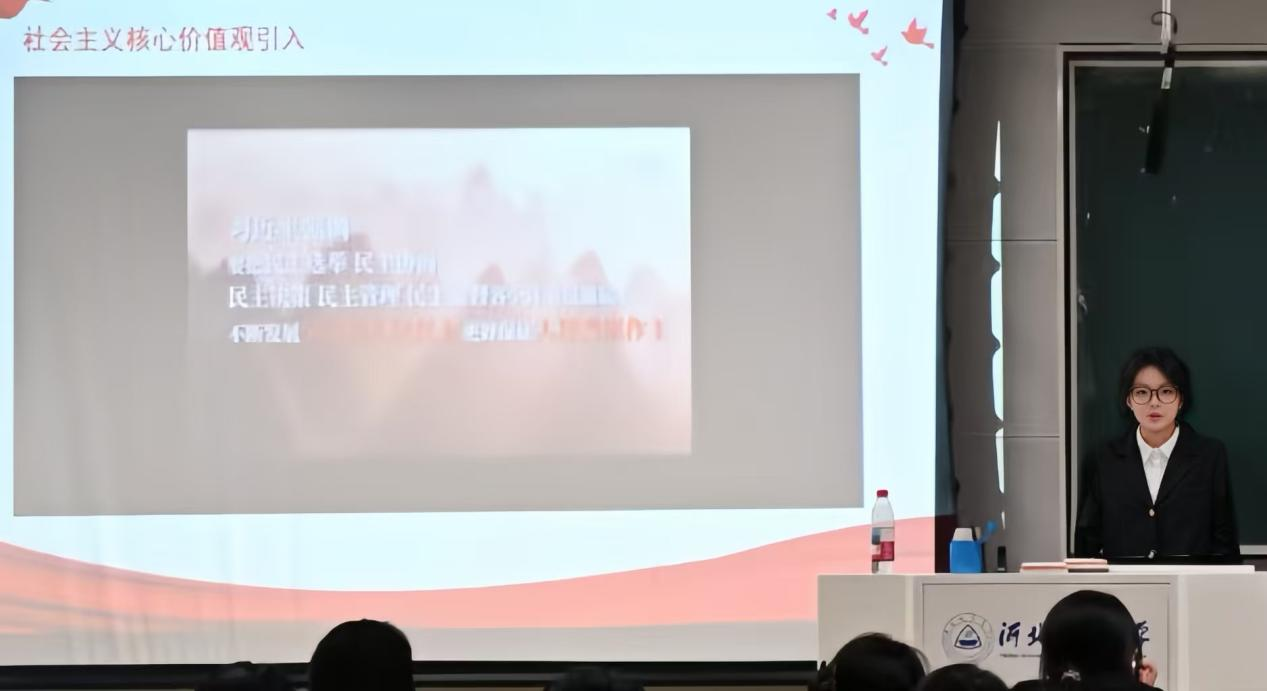 在第六课《新时代青年的时代观塑造与社会主义核心价值观践行》中,团委组织部部长刘子瑶讲述了社会主义核心价值观的内涵与意义,帮助同学们精准把握社会主义核心价值观在国家、社会、个人三个层面的要求。推动同学们将思想认识转化为立足自身、服务社会的实际行动。