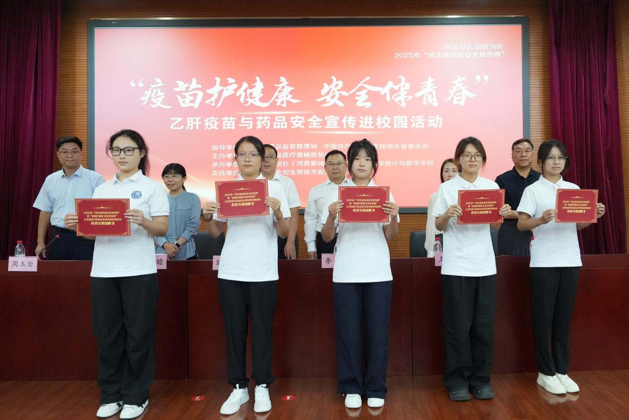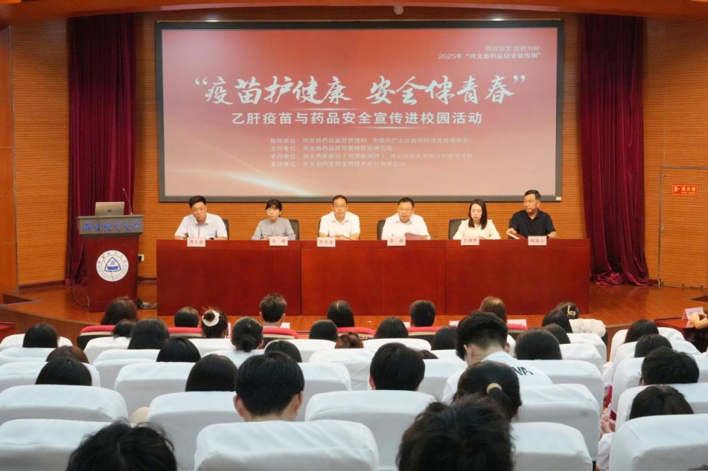 9月1日下午,2025年“河北省药品安全宣传周”暨“疫苗护健康 安全伴青春”乙肝疫苗与药品安全宣传进校园活动在我校国际学术报告厅举行。本次活动由河北省药品监督管理局、中国共产主义青年团河北省委员会指导,河北省药品医疗器械检验研究院主办,河北青年报社、suncitygroup太阳集团承办,华北制药金坦生物技术股份有限公司提供技术支持,旨在聚焦青年健康需求,将药品安全知识与乙肝防护服务送进校园,全面提升大学生健康素养与安全防护能力。学生处、校团委、校医院以及suncitygroup太阳集团300余名师生代表参加。