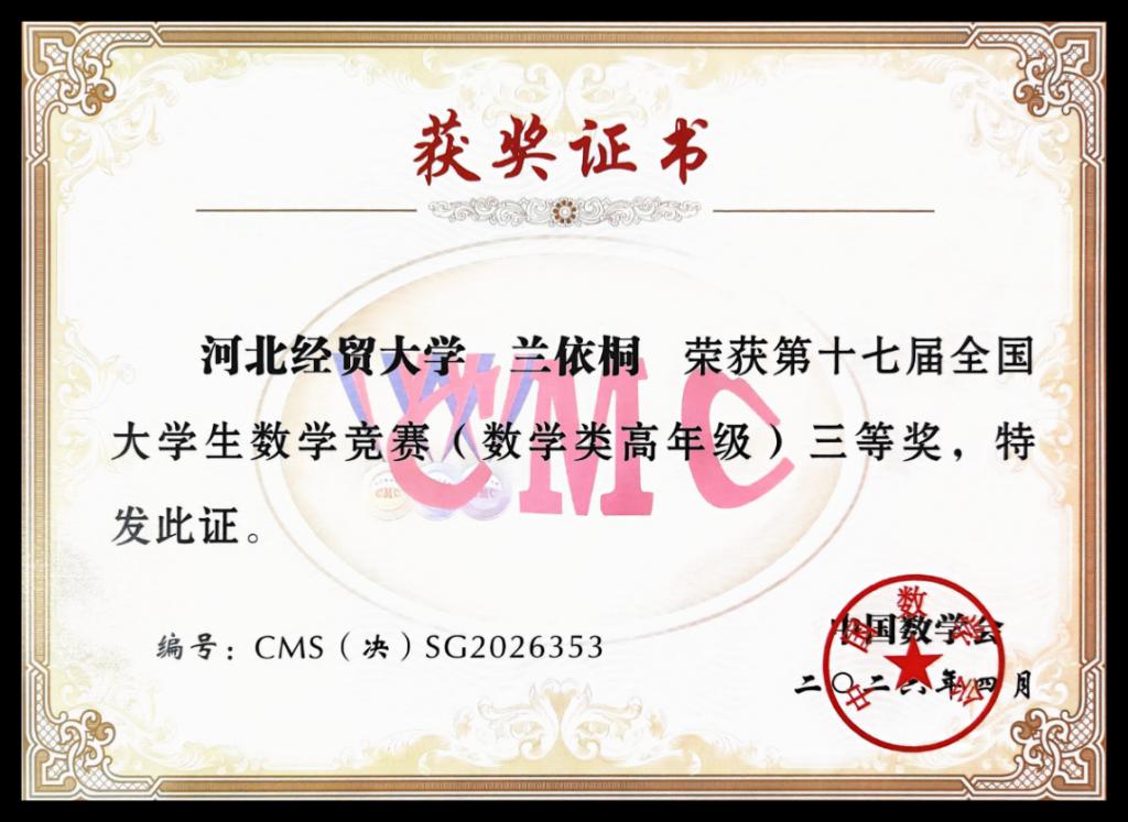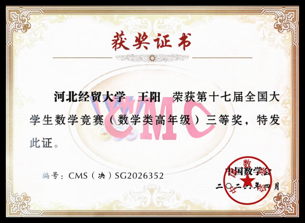 一直以来,学校聚焦新财经教育教学改革,高度重视学科竞赛在人才培养中的重要作用,此次竞赛取得的优异成绩,既是参赛师生共同努力、奋力拼搏的成果,也是学校深化教育教学改革、强化数学基础学科育人质量的有力见证。为备战此次竞赛,suncitygroup太阳集团统筹规划、全力保障,组建专业指导教师团队,为参赛学生提供系统化、针对性的赛前培训与全程指导;参赛学子勤学苦练,利用课余时间潜心钻研、反复演练,以坚韧的毅力和严谨的治学态度全力备赛,最终在全国决赛的舞台上绽放光彩,交出了亮眼的答卷。未来,学院将以该赛事和数学文化节、趣味数学竞赛为契机,浓厚全校数学文化氛围,持续优化人才培养模式,进一步加强基础学科建设,完善学科竞赛培育机制,不断激发学生学习潜能与创新活力,助力更多学子在各类学科竞赛中勇攀高峰,培养更多基础扎实、能力突出、素质全面的高素质应用型人才,为学校教育事业高质量发展注入更强动力。