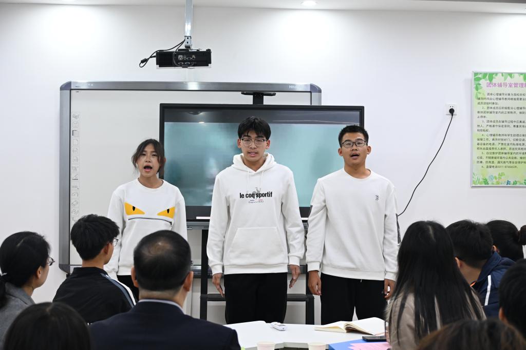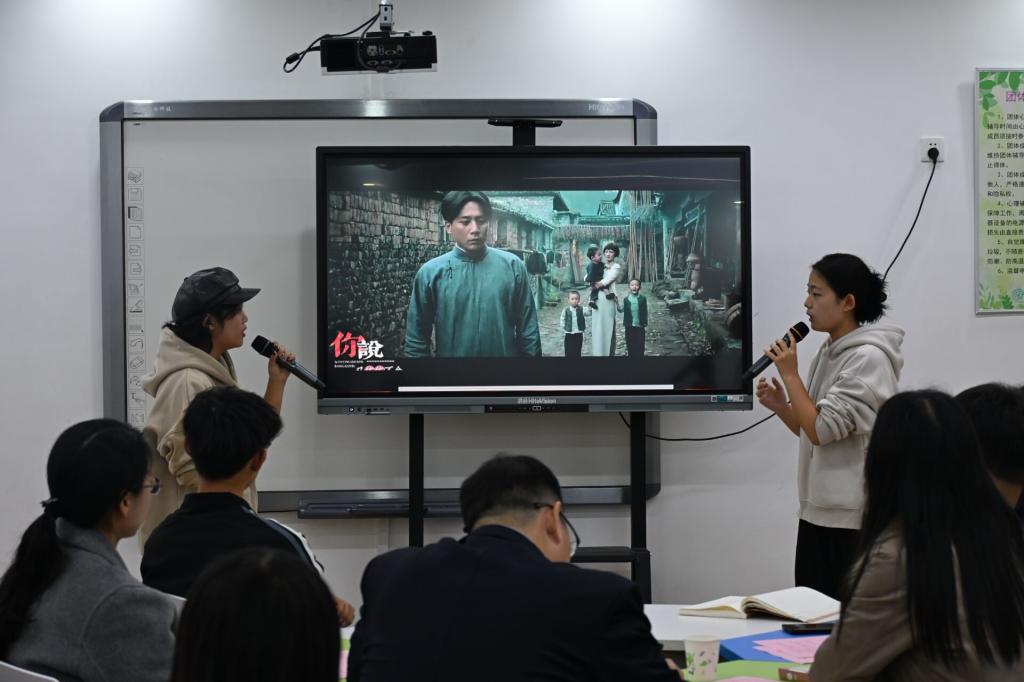 本次班会以“榜样如光 逐梦前行”为主题,围绕“寻迹·英雄之光、致敬·榜样之声、引领·成长之舵”三个篇章展开。班会伊始,师生共同观看了由同学们精心制作的视频《谁是英雄》。视频内容跨越时空,汇聚了峥嵘岁月中的革命先烈,以及当代科研、医学、教育、体育、基层工作者与平凡岗位等70余位榜样人物的影像资料,构筑了一部波澜壮阔的英雄谱系。在随后的分享环节,同学们踊跃发言,讲述心中榜样的感人事迹及其对自身成长的启迪。三位学生代表还为《觉醒年代》经典片段现场配音,深情演绎革命先烈的豪情与信念,将现场氛围推向高潮。活动在同学们倾情演唱励志歌曲中落下帷幕,真挚情感涌动全场,引人深思。