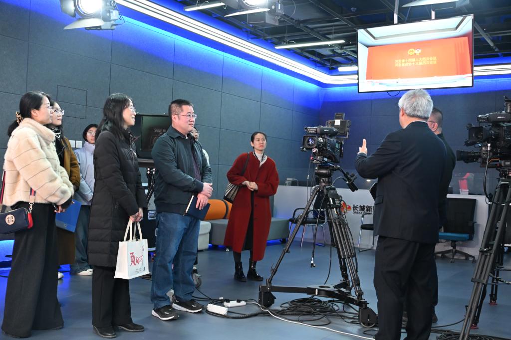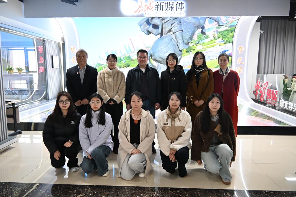 学院师生一行在长城智媒研究院相关负责人的陪同下参观企业,深入了解“学习强国”学习平台的发展历程、建设成果与运营理念,深切体会到平台在思想引领、知识传播、服务群众方面的重要作用。随后,师生们走进XR演播室、访谈演播室,详细了解融媒体节目制作的技术应用、流程规范与创新模式,近距离感受智媒时代媒体行业的发展趋势,为后续校企深度合作筑牢基础。