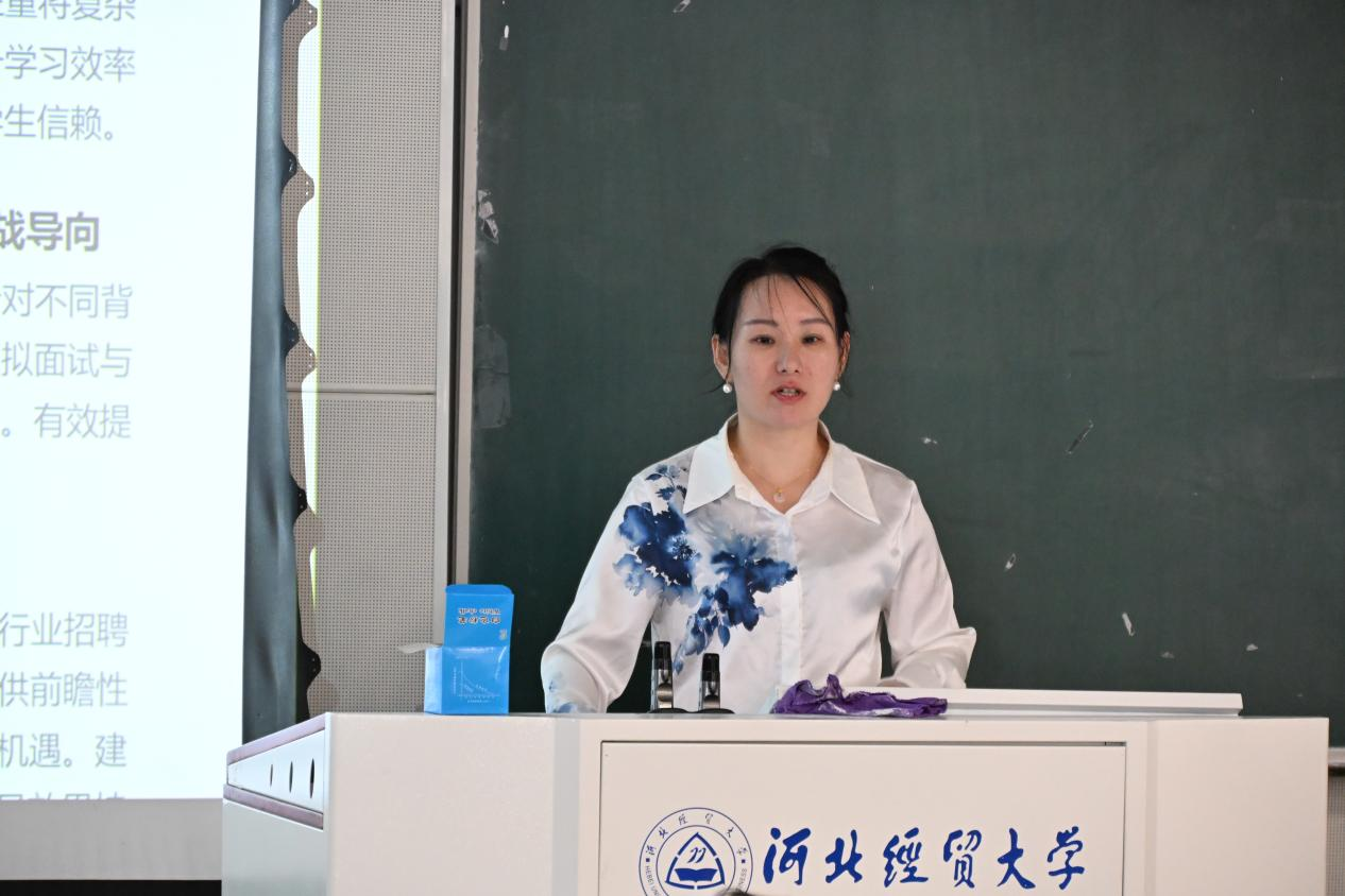 指导会上,王莹从自我认知与职业定位切入,引导同学们结合专业优势、性格特质与兴趣方向,清晰认识自我,找准适合的职业赛道,树立与专业发展相契合的职业目标。围绕热门行业与职业概况,她深入分析了当前行业的发展前景、人才需求标准及岗位核心要求,帮助同学们精准把握行业动态,明确发展方向。在简历优化环节,王莹强调,简历是求职的关键名片,提升回复率需紧扣企业的岗位需求。她结合具体案例,详细讲解了如何突出与目标岗位匹配的自我评价、扎实的学业成绩、专业相关的实践成果与科研经历,充分展现专业能力与岗位适配度,有效提高简历通过率。