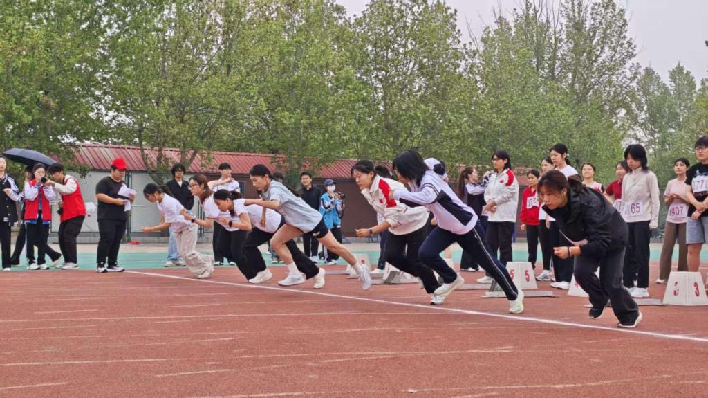运动场上,我院运动员以饱满的精神状态和昂扬的斗志投入各项赛事,在竞技场上奋勇争先,展现出顽强拼搏的体育风貌。百米赛道上,短跑选手如疾风骤雨,在终点线前拼尽全力;跳高赛场上,运动员们轻盈起跳,身姿矫健,一次次挑战新的高度;实心球投掷区,选手们紧握球体,用全身力量将其奋力掷出,划破长空。纵使汗水湿透衣衫,选手们依然目光坚定,向着胜利不懈冲刺。看台上,我院观众就坐整齐划一,他们挥舞着、呐喊着,加油声、助威声响彻云霄,为赛场上的勇士们注入澎湃力量。