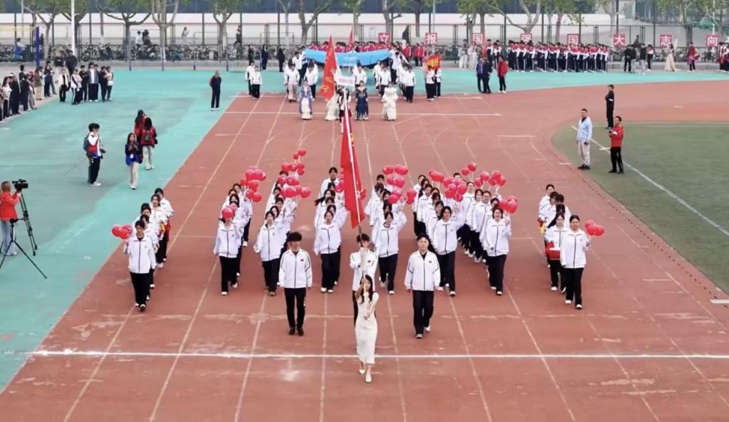 开幕式上,学院方阵别出心裁,创意十足。队员们身着统一服装,和着整齐的鼓点向主席台行进。行进过程中,高高飘扬的院旗在空中划出绚丽的弧线。到达指定位置后,方阵整齐排列,队员们左手各持两个标有数学符号“π”图案的气球,将数学之美与运动活力完美融合,展现出统数学子蓬勃向上的青春力量。